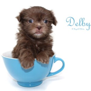 Delby is a solid dark chocolate Mi-Ki with the graying gene. He is out of Jubilee’s Champagne Truffle. We’re pleased that Delby now lives in the United Kingdom. He’s been retired as a pet but did a great job of contributing to the gene pool across the pond.