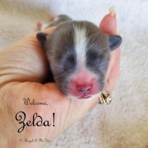 So far, we have only produced one blue Mi-Ki – Zelda, a blue brindle. We’ve added a slideshow of her to show how her color develops as she’s grown. She apparently does not have the graying gene as her blue has remained dark.