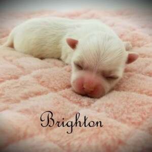 Clear Red Mi-Kis have no black pigment in their fur, only on their skin. This is a recessive trait. Clear Red Mi-Kis may be white (almost always with a few cream spots), cream, buff, or apricot. Out of all the colors of Mi-Kis, the clear reds will change the least amount in color as adults.