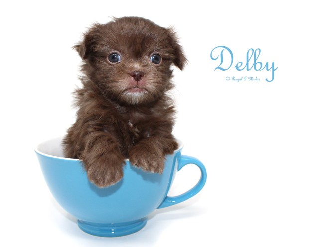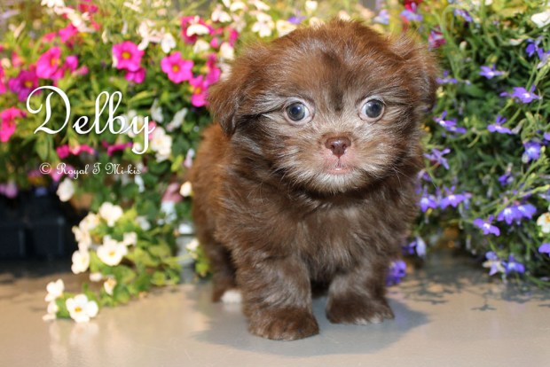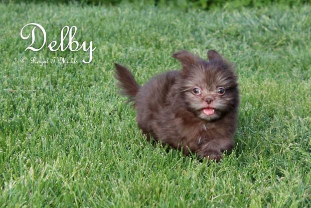 Delby is a solid dark chocolate Mi-Ki with the graying gene. He is out of Jubilee’s Champagne Truffle. We’re pleased that Delby now lives in the United Kingdom. He’s been retired as a pet but did a great job of contributing to the gene pool across the pond.