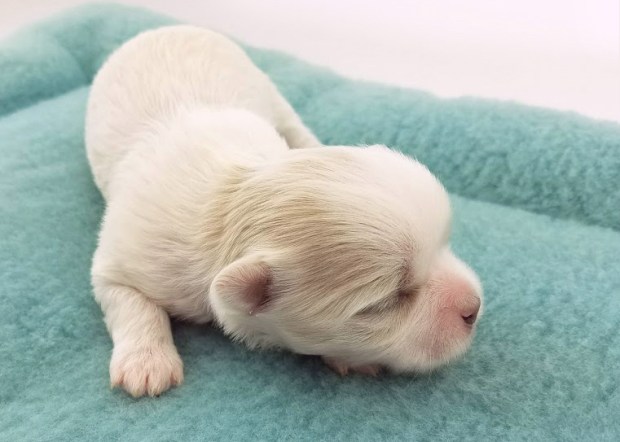 Clear Red Mi-Kis have no black pigment in their fur, only on their skin. This is a recessive trait. Clear Red Mi-Kis may be white (almost always with a few cream spots), cream, buff, or apricot. Out of all the colors of Mi-Kis, the clear reds will change the least amount in color as adults.