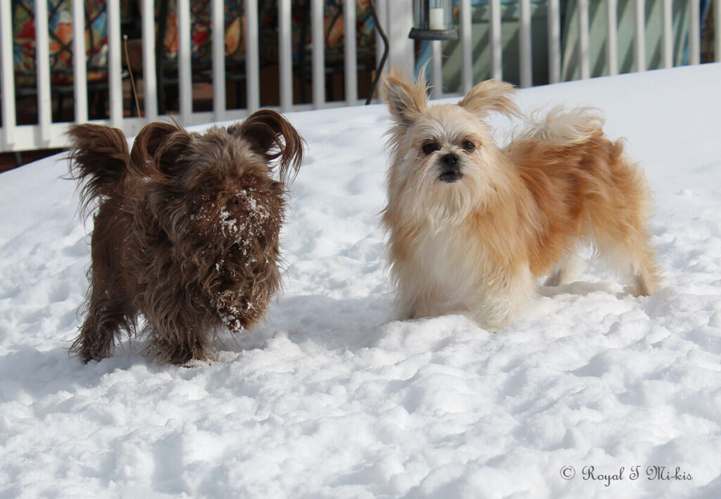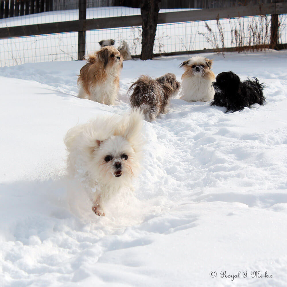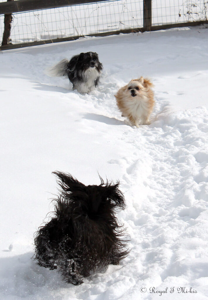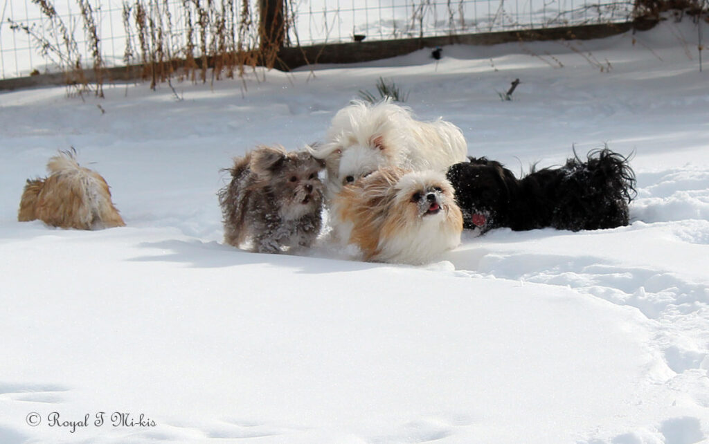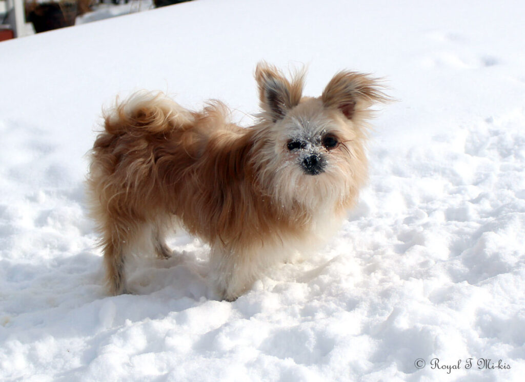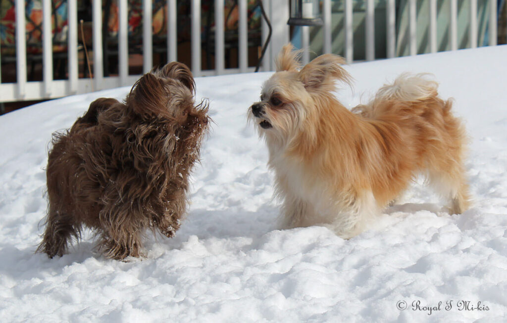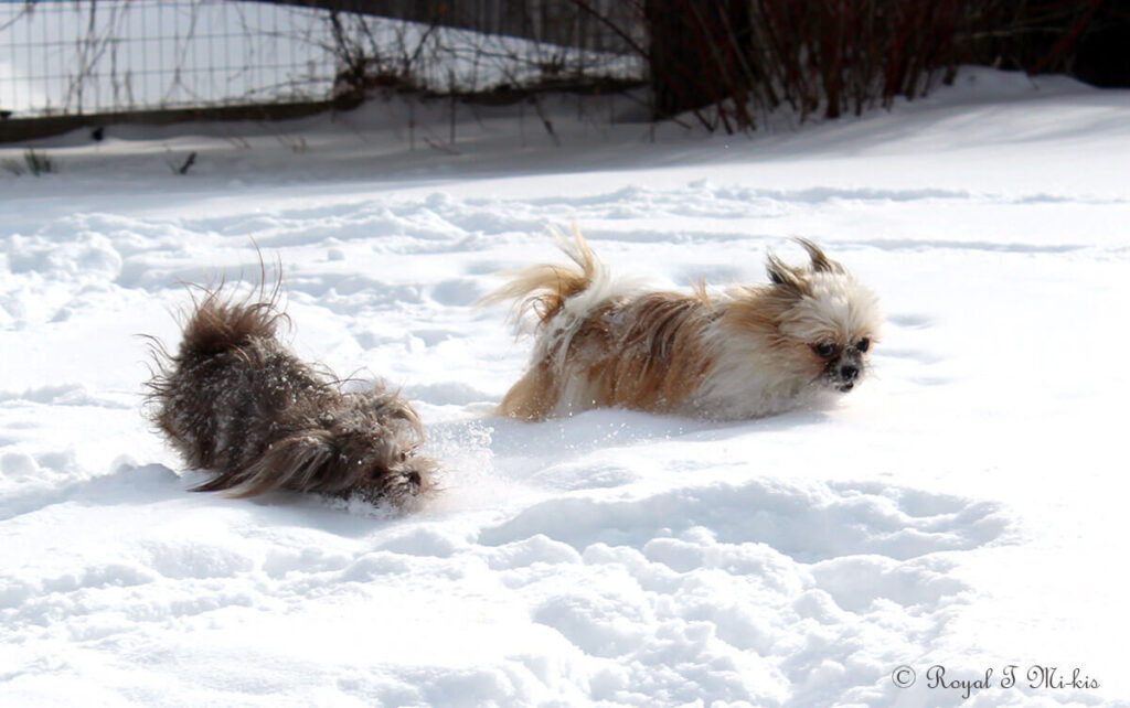 Although the Mi-ki dog breed is small, they still enjoy having big fun in the snow. Our dogs are used to playing outdoors and the wintertime is no exception.
