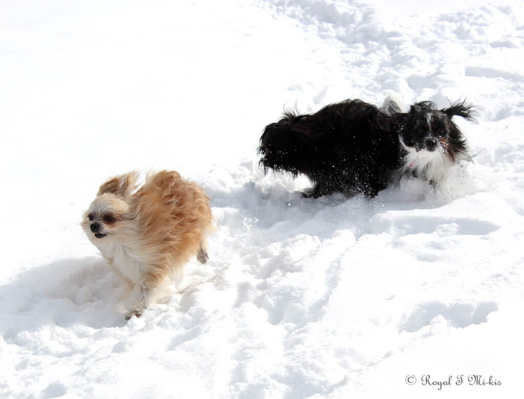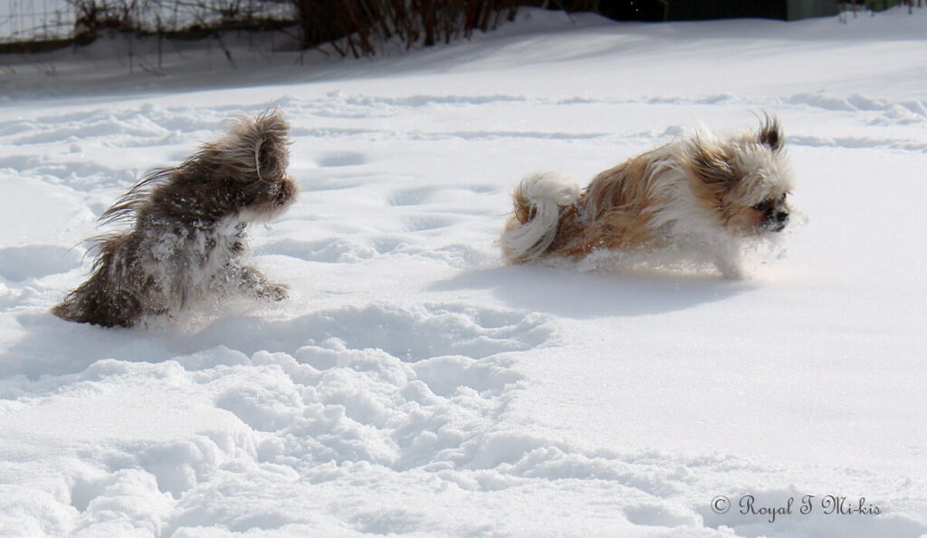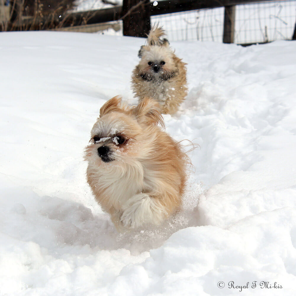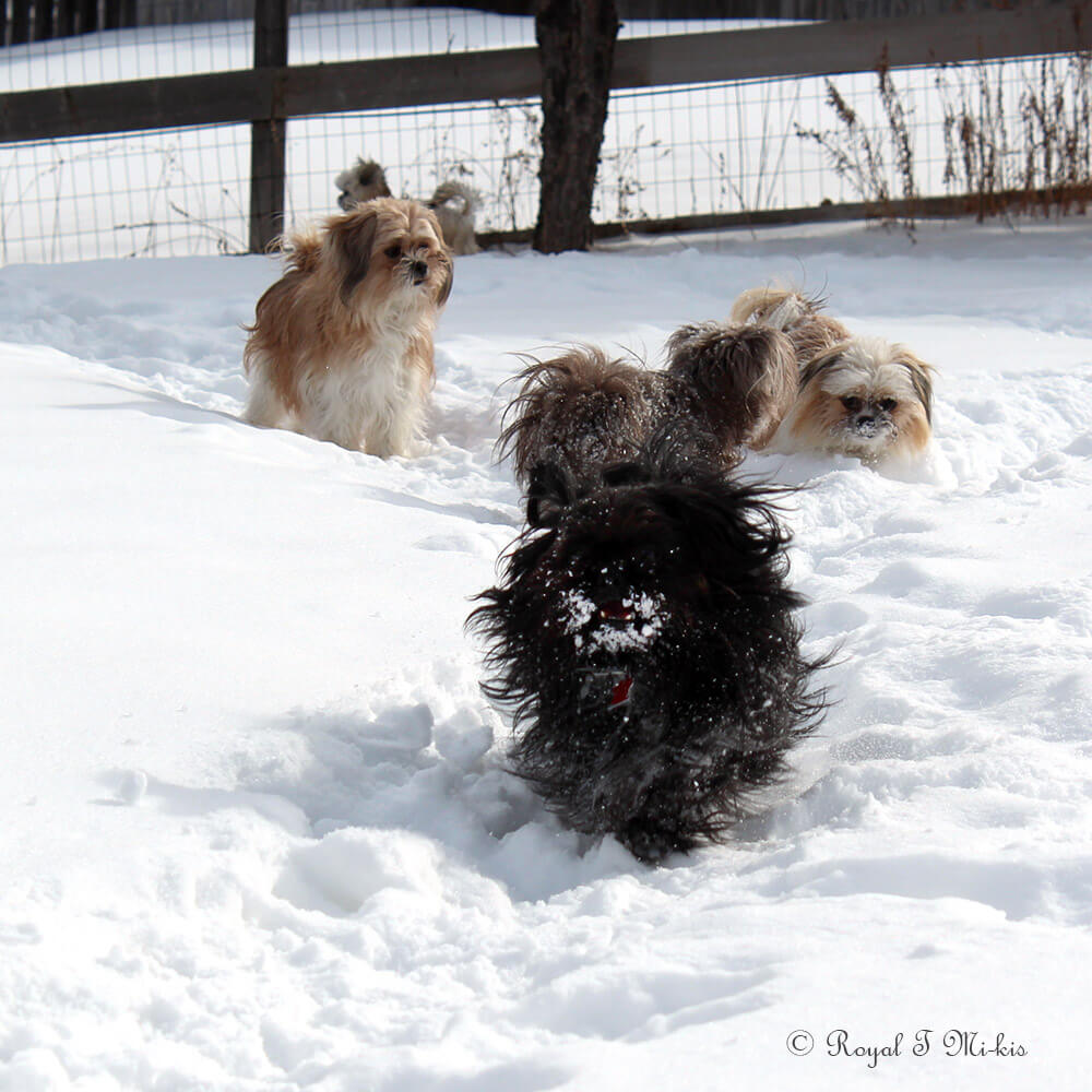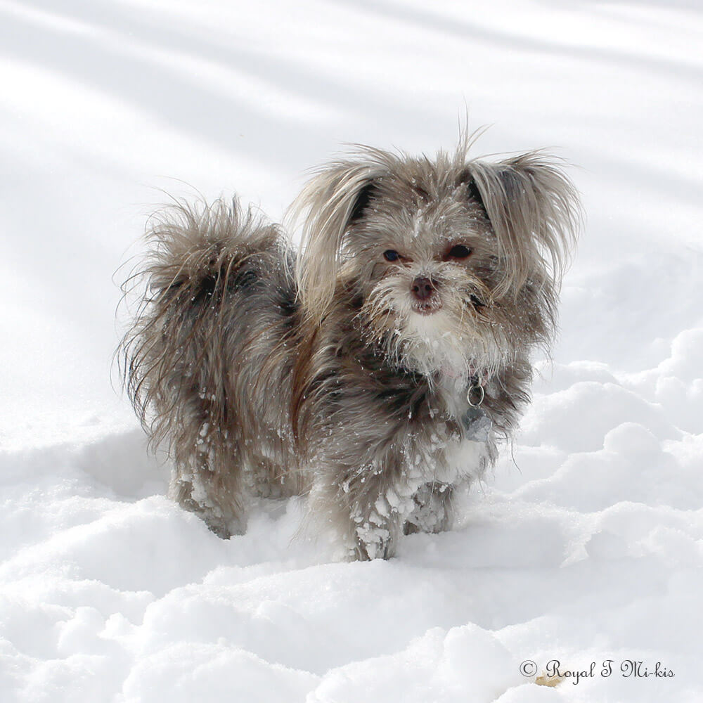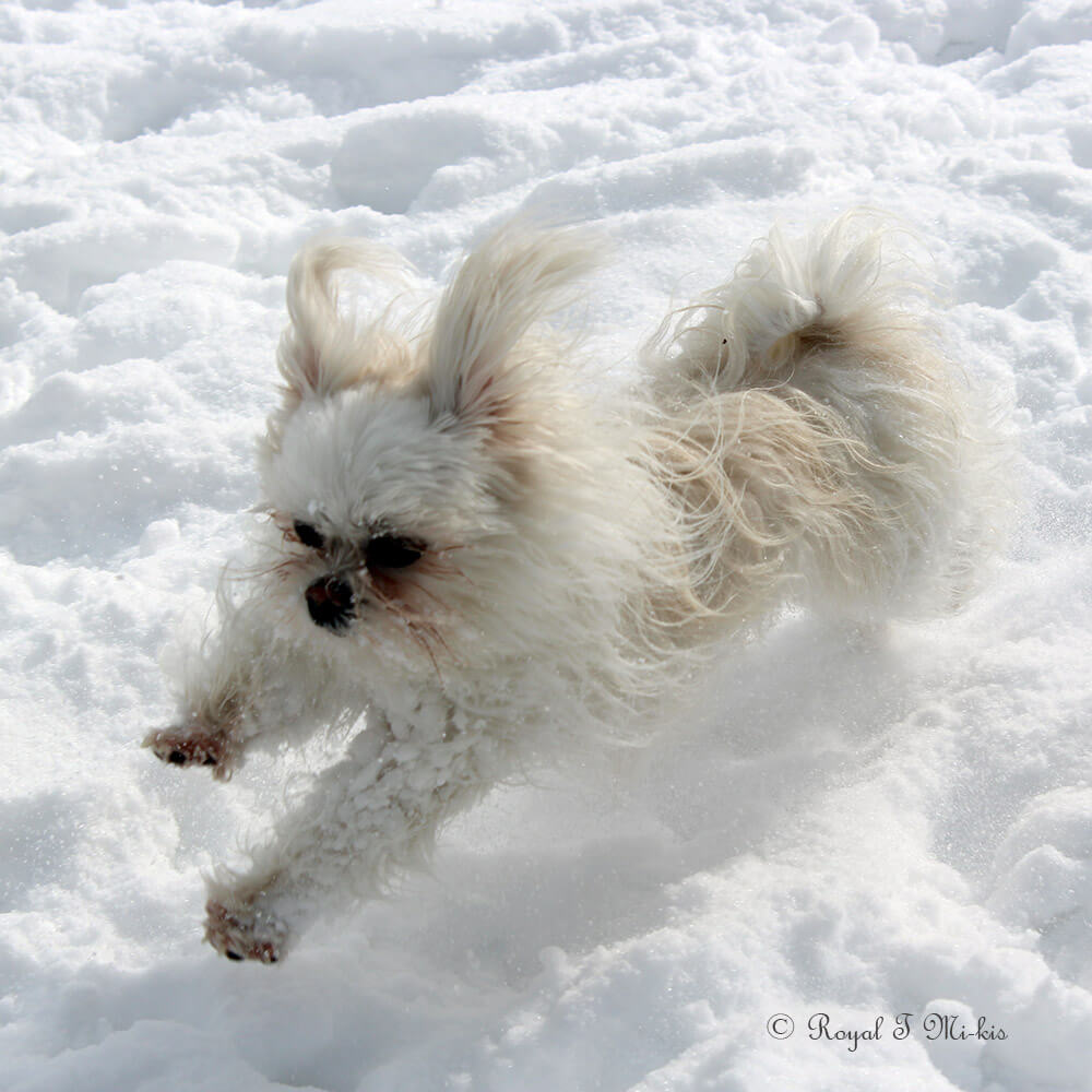 Although the Mi-ki dog breed is small, they still enjoy having big fun in the snow. Our dogs are used to playing outdoors and the wintertime is no exception.