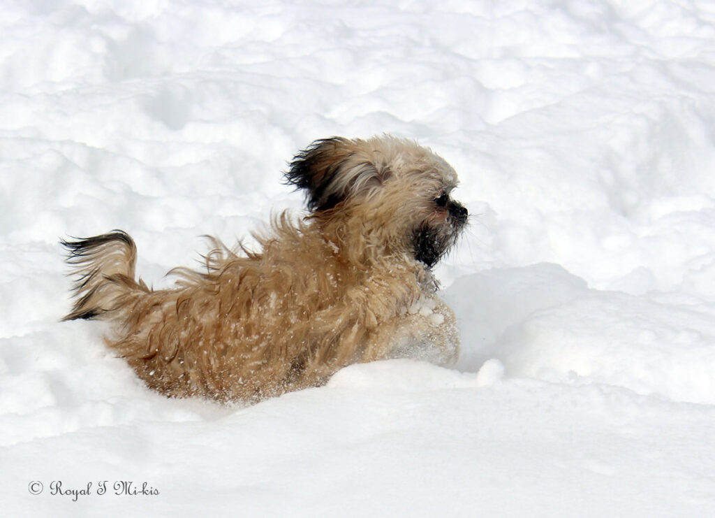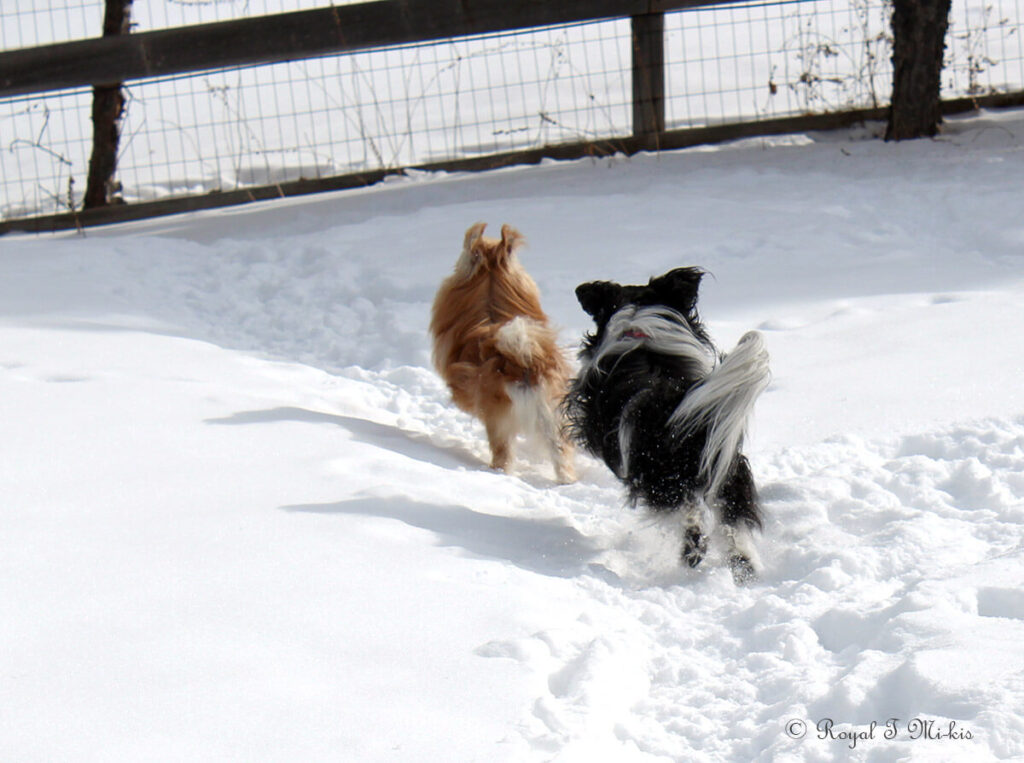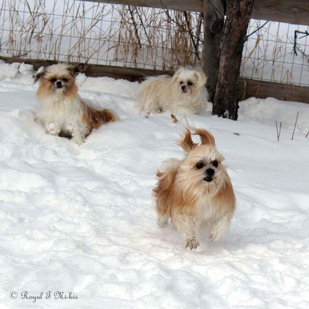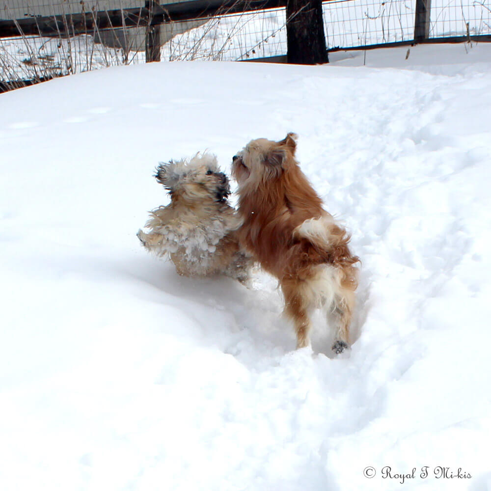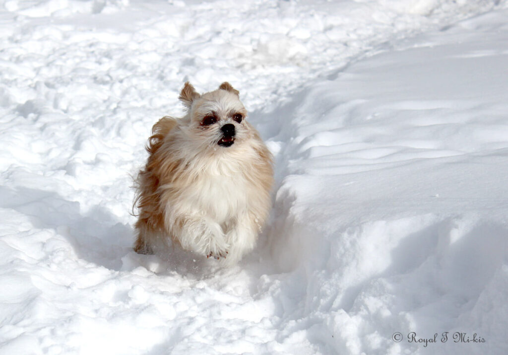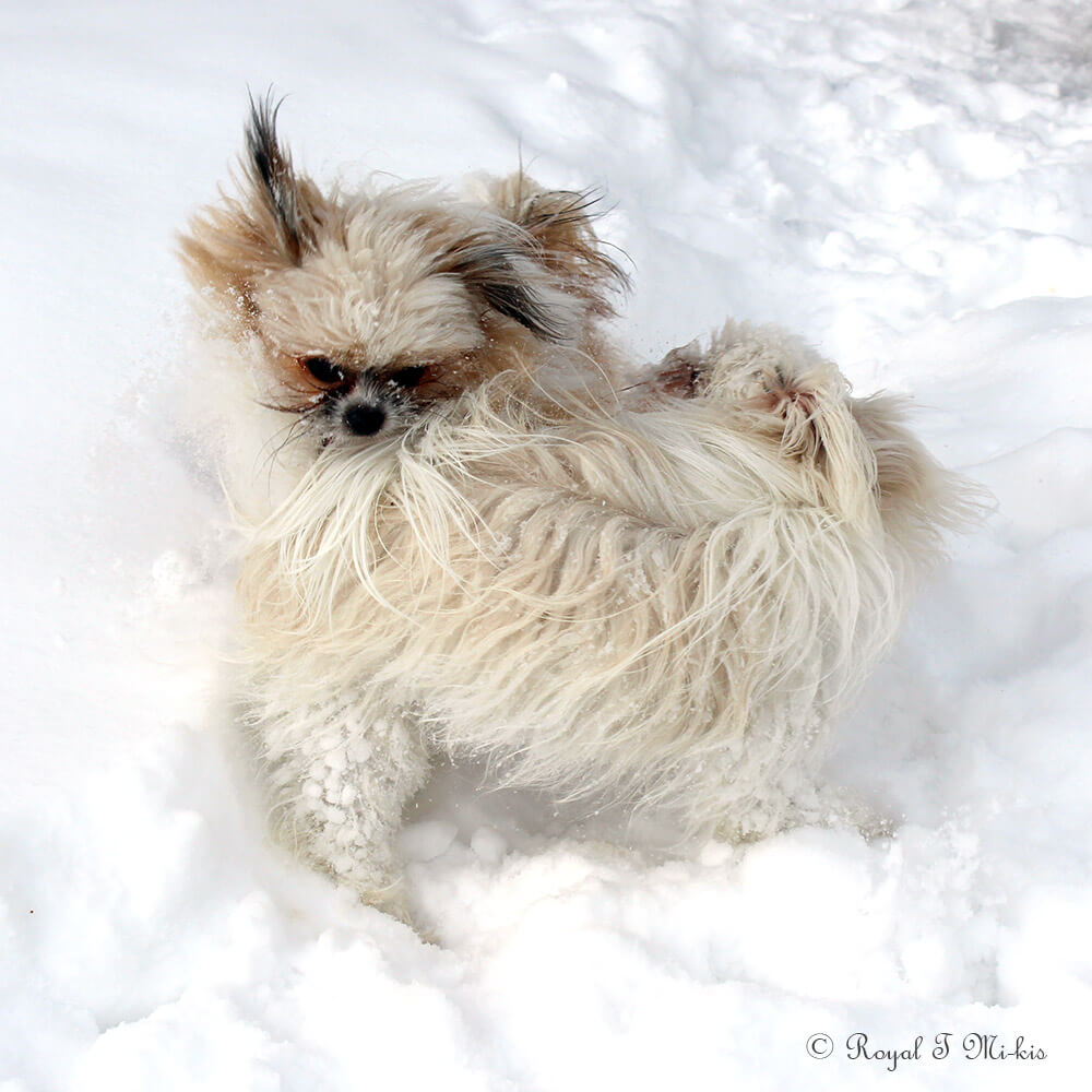 Although the Mi-ki dog breed is small, they still enjoy having big fun in the snow. Our dogs are used to playing outdoors and the wintertime is no exception.
