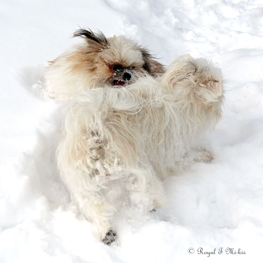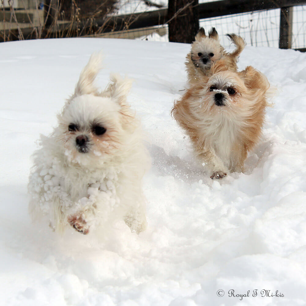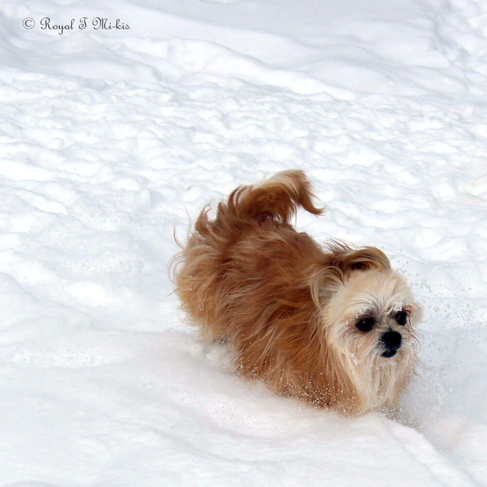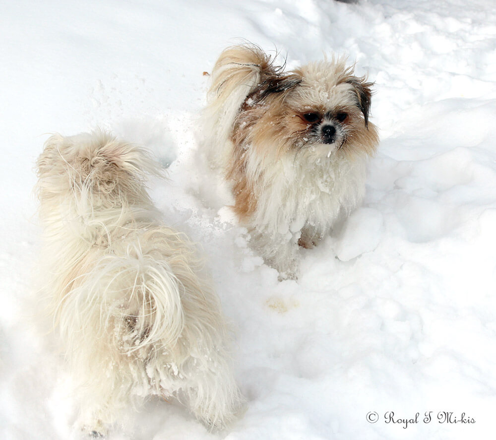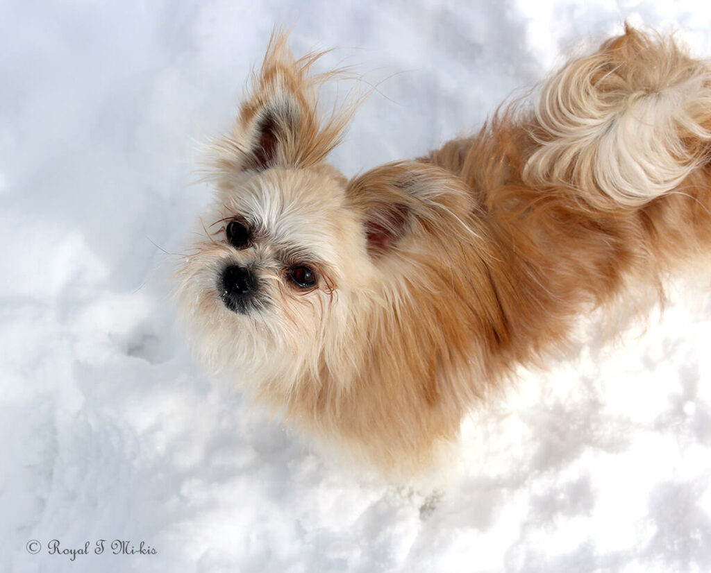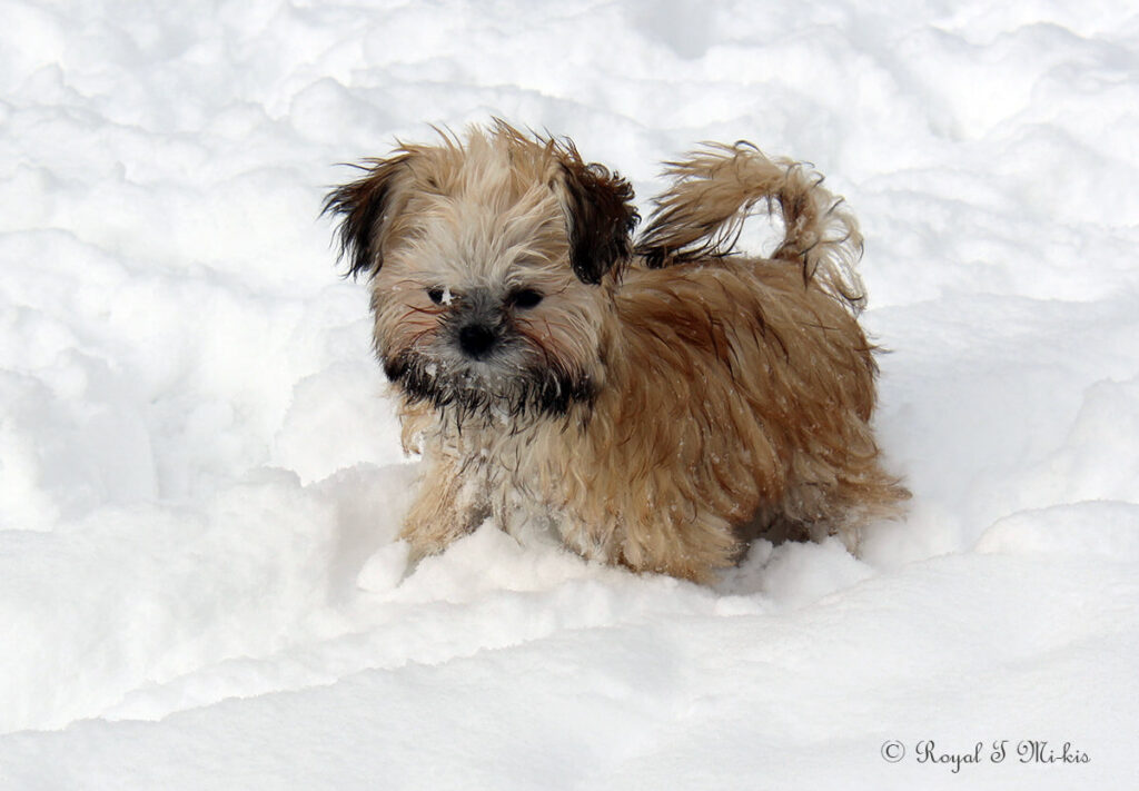 Although the Mi-ki dog breed is small, they still enjoy having big fun in the snow. Our dogs are used to playing outdoors and the wintertime is no exception.