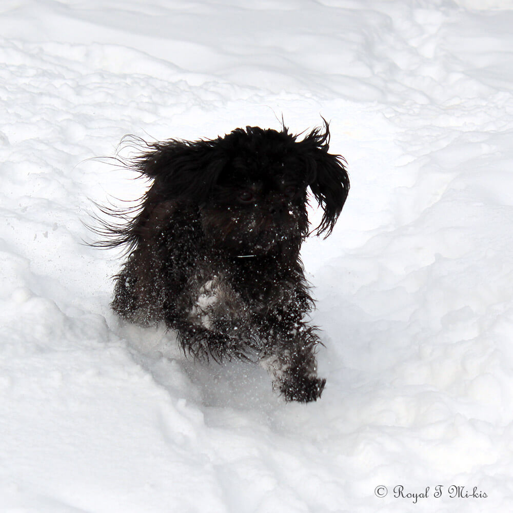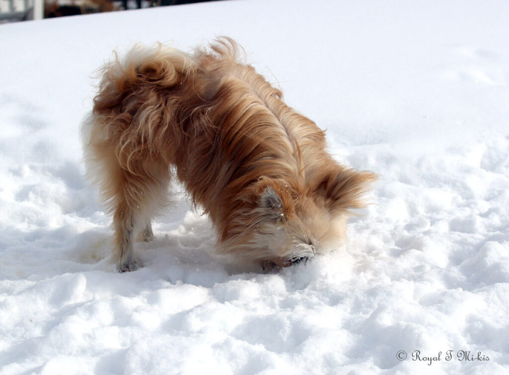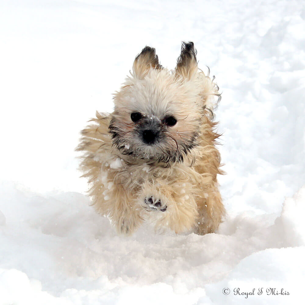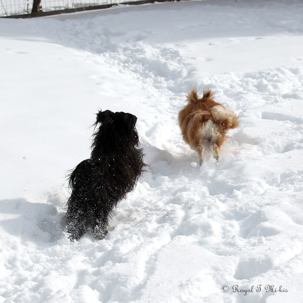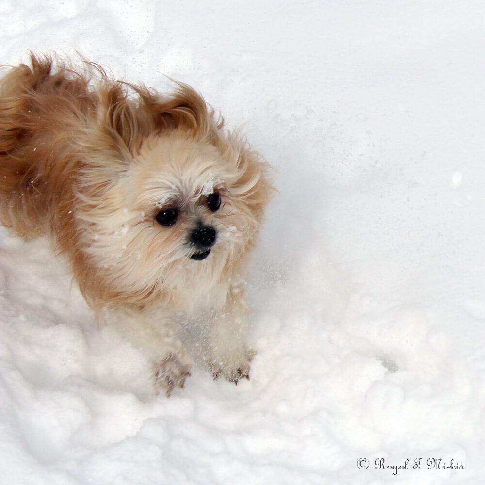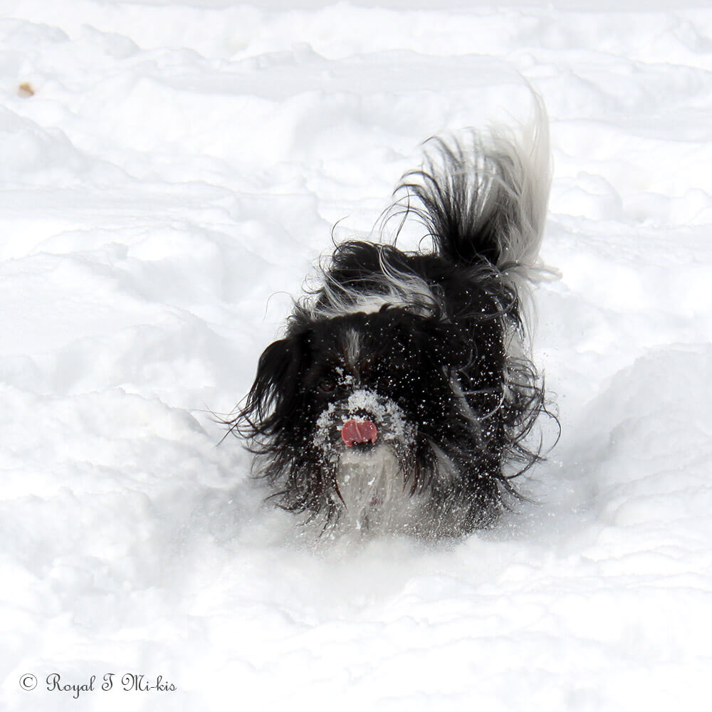 Although the Mi-ki dog breed is small, they still enjoy having big fun in the snow. Our dogs are used to playing outdoors and the wintertime is no exception.