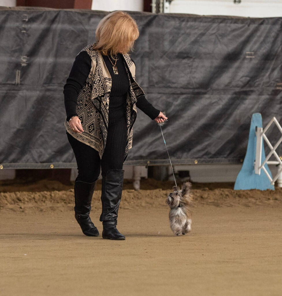 Harley is a bit of a knucklehead and won’t stand and stack nicely for anything. Despite being silly while “standing,” he relishes time with me and would excitedly prance around the show ring. His signature head tilt would win over the judges every time! As a result, Harley won a group 2, two group 3s, and a group 4 in the companion ring. This was very satisfying when competing against other great breeds who also show with the AKC. Harley earned his championship over those five shows!