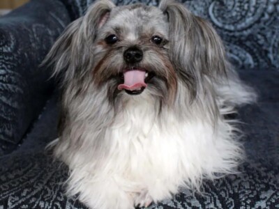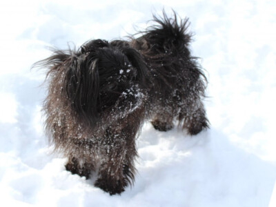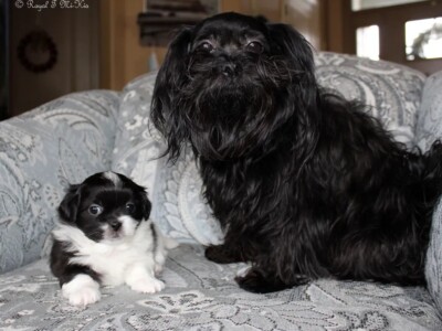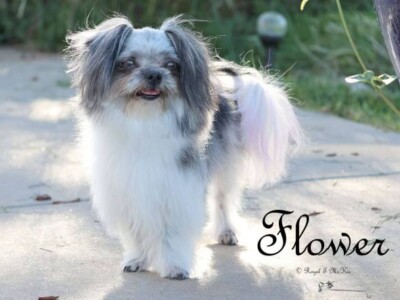 Eden produced our first-ever smooth-face Mi-Kis. Her puppies always had wonderful temperaments, and she was Flower of Eden’s mother. Her legacy continues through her son Quigley and grandchildren from Flower. Eden is living in a town nearby with her daughter Trixie. Eden is the daughter of Savannah and Sinbad.