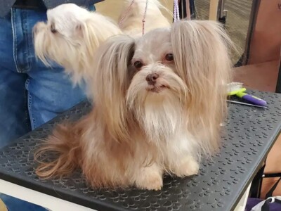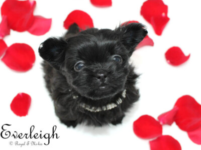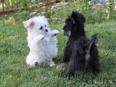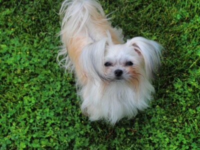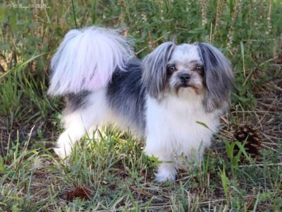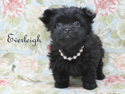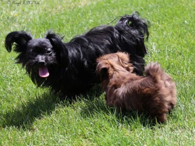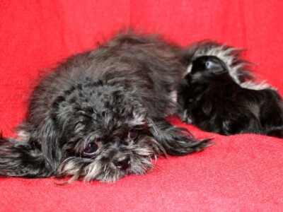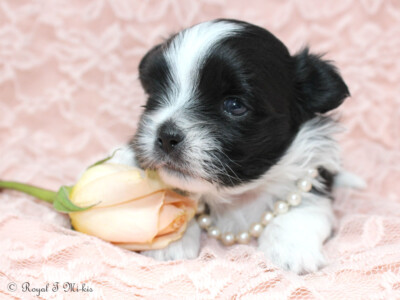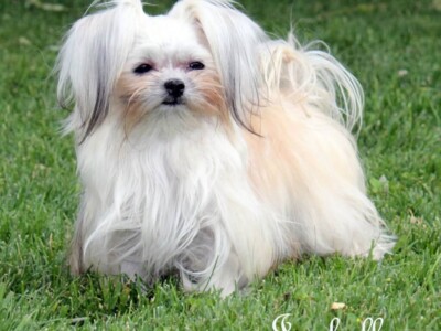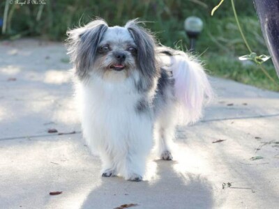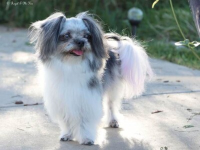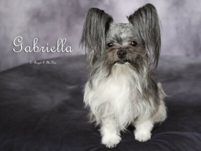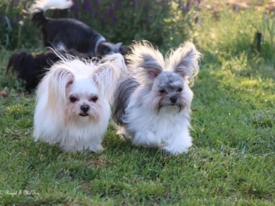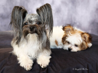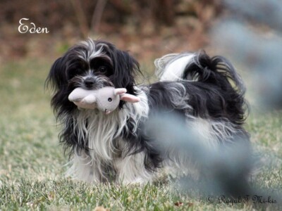 Even though Evie came to us first, Savannah was the first Mi-Ki we picked out. She is our mascot. We selected her from Jubilee Mi-Kis based on the fact that I wanted a Mi-Ki line with an aptitude for medical alert/service work as I was suffering from epilepsy at the time. Savannah’s grandmother Halle serves as a diabetic blood sugar detection dog. Although my seizures were eventually controlled with diet and essential oils, Savannah can be credited for our start into purpose-bred breeding to help others looking for small, quiet, hypoallergenic support animals. Many of her offspring have gone on to be medical alert dogs and do other types of support work.