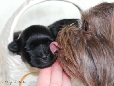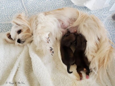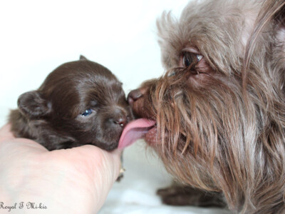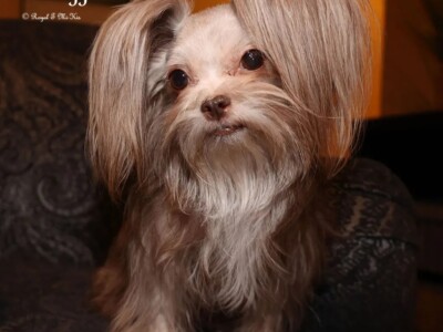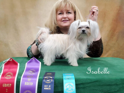 Isabelle is my heart dog. She sleeps on my pillow every night. UKC Ch. Royal T’s Irresistible Isabelle is a tiny Mi-Ki girl (barely 4 pounds) who carries chocolate from her mother Truffle and clear red from her father Moses. She’s done well in the show ring. She became a UKC champion on 7/16/22. Isabelle has graced us with one last daughter (Yin Mei Ling) that we’re keeping. Since this was her second C-section, Isabelle has been retired and will be staying here. Francine is another daughter she produced who is in a guardian home. Isabelle is the #8 dog in the UKC’s Top 10 for 2023.