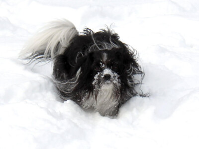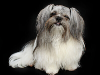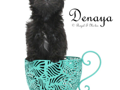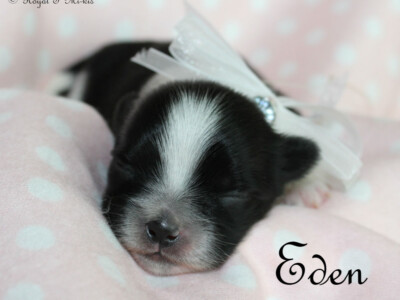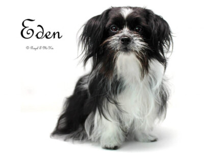 Eden – Black and White Long Coat Mi-Ki Female (carries the Smooth-Face gene) – retired