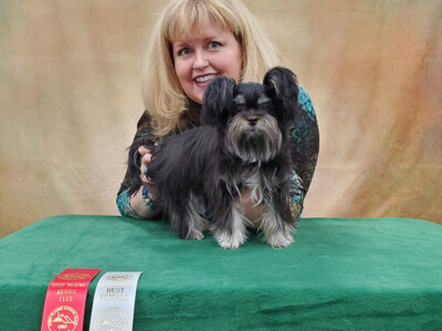 Cocoa Chanel Couture is Truffle and Baron’s chocolate sable daughter. She is a little over 4.5 pounds. Chanel did well at the 2022 Mi-Ki Specialty and earned 1st Place in Bred-by Female as well as her National and International Champion titles (applications pending.) Sadly, she did not have good breeding outcomes and is now retired after just two litters. Her legacy lives on with her son Gimli (formerly Ulrich) who is in a partnership home.