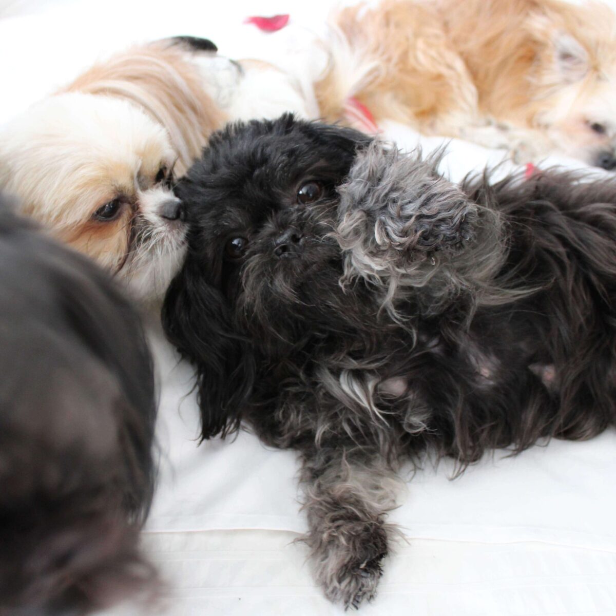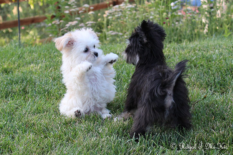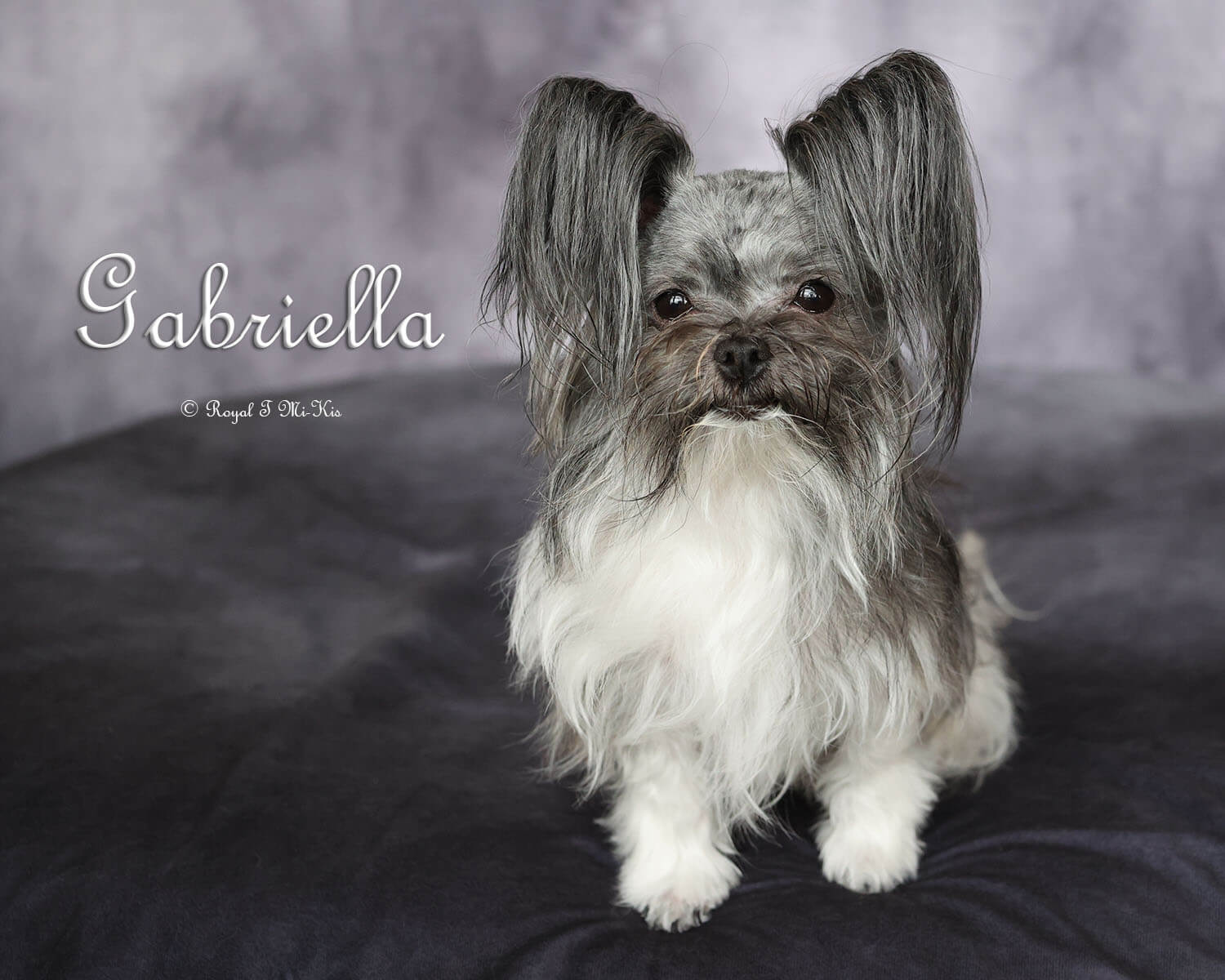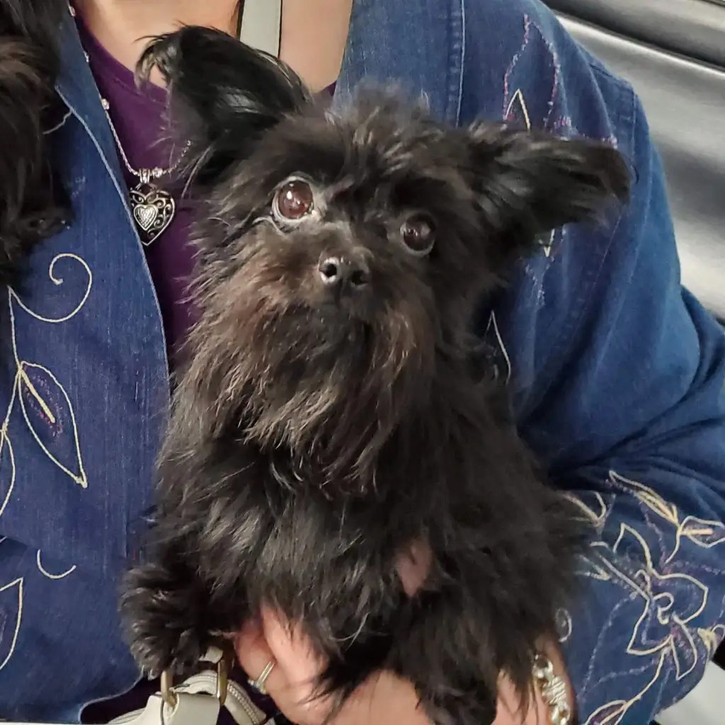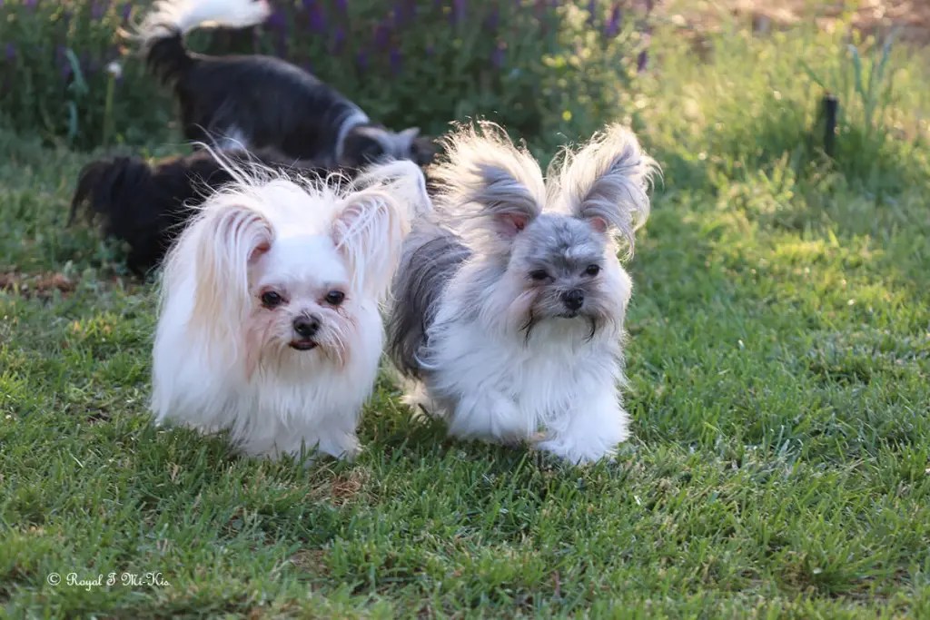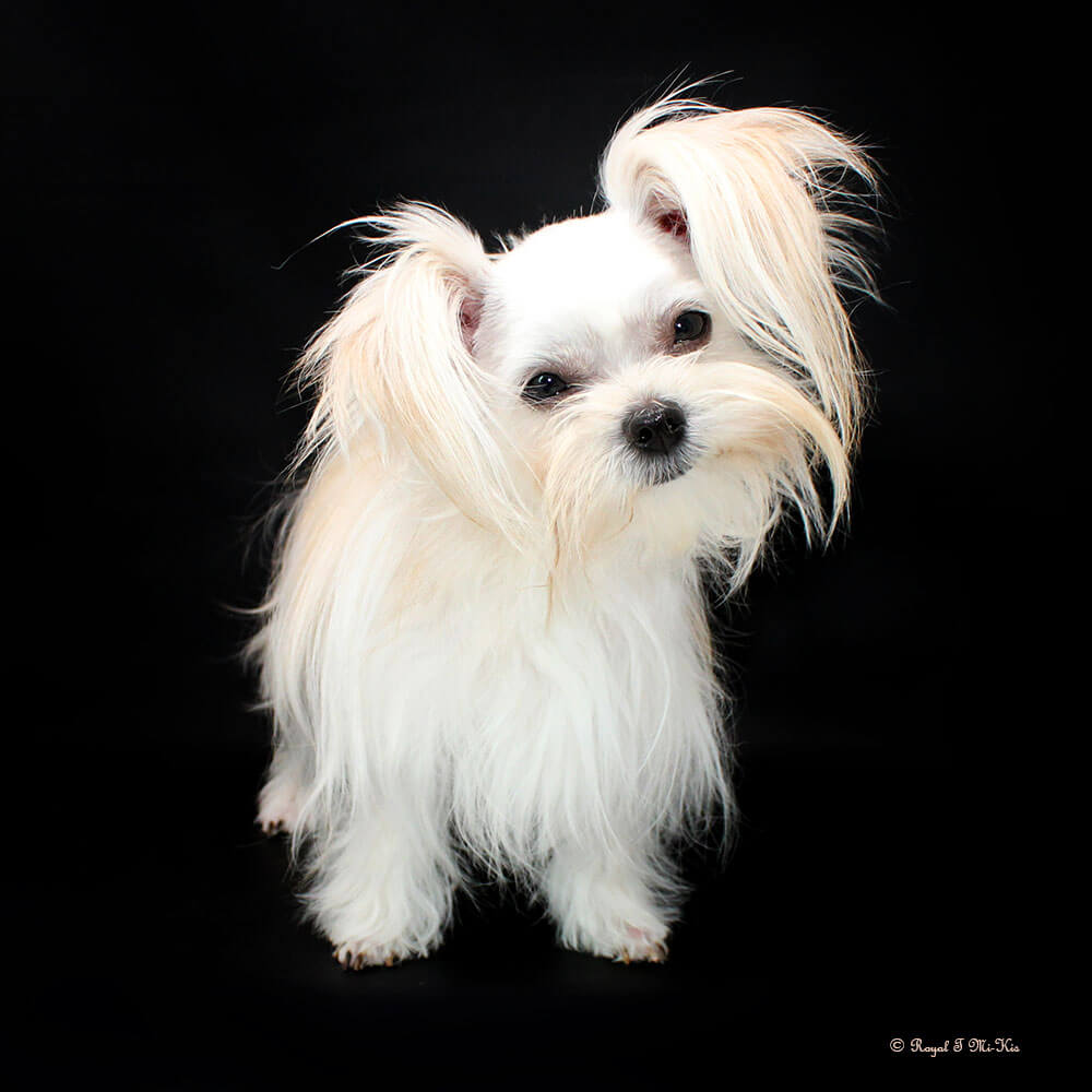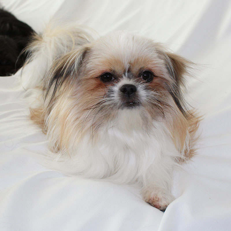 Even though Evie came to us first, Savannah was the first Mi-Ki we picked out. She is our mascot. We selected her from Jubilee Mi-Kis based on the fact that I wanted a Mi-Ki line with an aptitude for medical alert/service work as I was suffering from epilepsy at the time. Savannah’s grandmother Halle serves as a diabetic blood sugar detection dog. Although my seizures were eventually controlled with diet and essential oils, Savannah can be credited for our start into purpose-bred breeding to help others looking for small, quiet, hypoallergenic support animals. Many of her offspring have gone on to be medical alert dogs and do other types of support work.