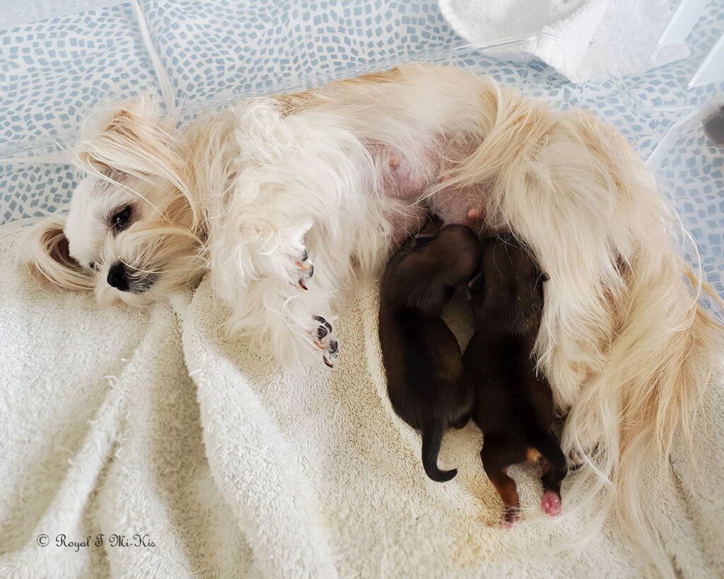 Isabelle is my heart dog. She sleeps on my pillow every night. UKC Ch. Royal T’s Irresistible Isabelle is a tiny Mi-Ki girl (barely 4 pounds) who carries chocolate from her mother Truffle and clear red from her father Moses. She’s done well in the show ring. She became a UKC champion on 7/16/22. Isabelle has graced us with one last daughter (Yin Mei Ling) that we’re keeping. Since this was her second C-section, Isabelle has been retired and will be staying here. Francine is another daughter she produced who is in a guardian home. Isabelle is the #8 dog in the UKC’s Top 10 for 2023.