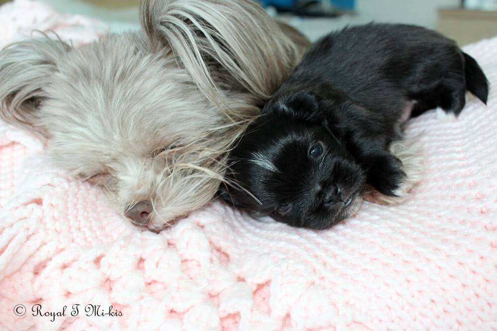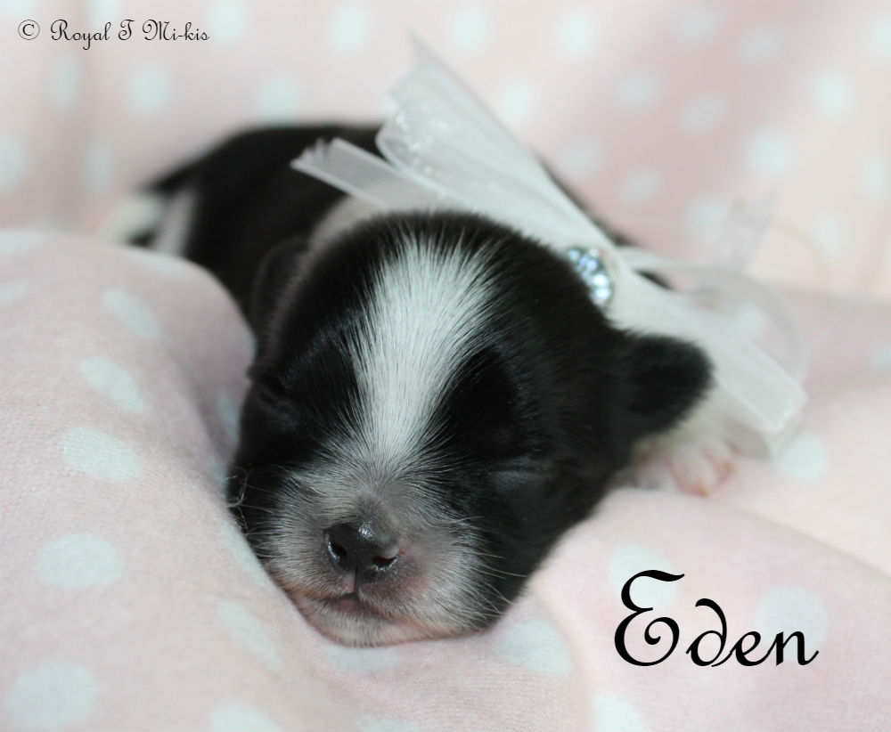 Everleigh produced beautiful puppies for both Jubilee Mi-Kis and us! Her legacy continues through her daughters Tootsie, Echo, Umber, and Minnie. Her son Mushu is a stud for TLC Mi-Kis. She is enjoying retirement in Texas with another Royal T Mi-Ki. Savannah and Sinbad are her parents, and Eden is her littermate.