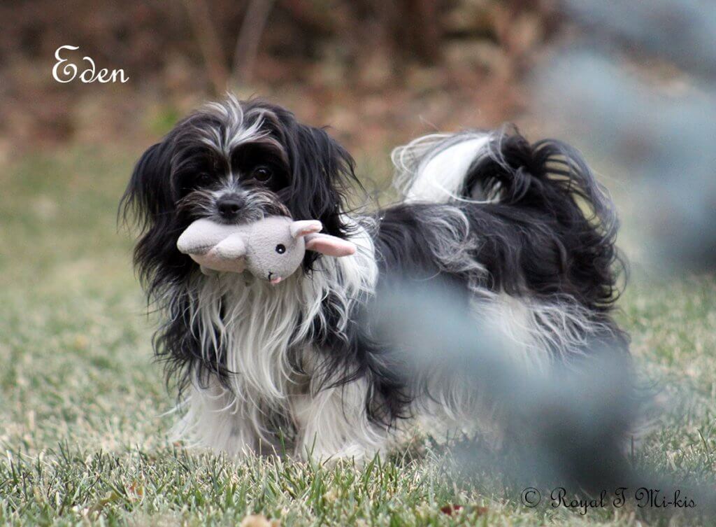 Eden – Black and White Long Coat Mi-Ki Female (carries the Smooth-Face gene) – retired