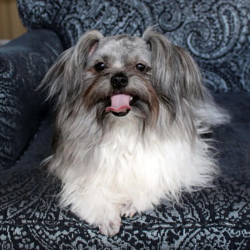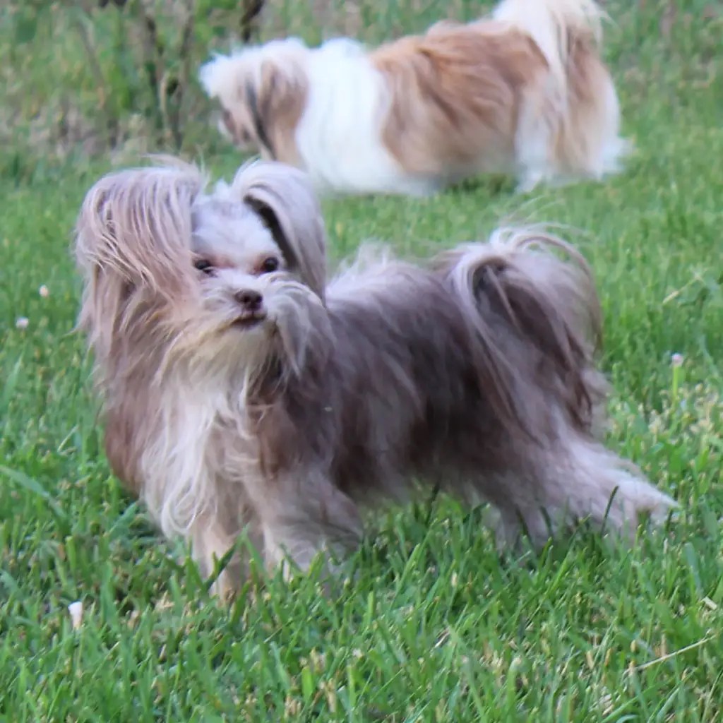 Eden produced our first-ever smooth-face Mi-Kis. Her puppies always had wonderful temperaments, and she was Flower of Eden’s mother. Her legacy continues through her son Quigley and grandchildren from Flower. Eden is living in a town nearby with her daughter Trixie. Eden is the daughter of Savannah and Sinbad.