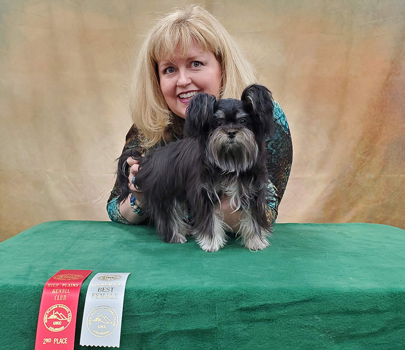 Belle Amie’s Sinbad has made significant contributions to our program. He sired several litters and gave his puppies that silky black coat that stays black. He has gorgeous, big round eyes that can be seen in several of our past and current dogs that will carry on his genes. Sinbad sired Eden, Everleigh, Denaya, Bitsy, and Cara Mia. He is enjoying his retirement in Washington.