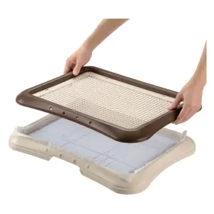 The snap-in frame holds the doggy pad firmly in place and keeps dogs from chewing the pads!