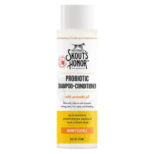 The Skout’s Honor Probiotic Shampoo Plus Conditioner for pets naturally support against shedding, itching, dryness, hot spots, and odor.